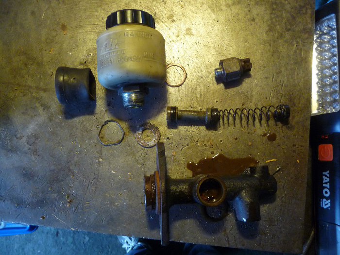 Następnie rozłożyłem pompę hamulcową. To błoto koło korpusu pompy to "płyn" hamulcowy :)