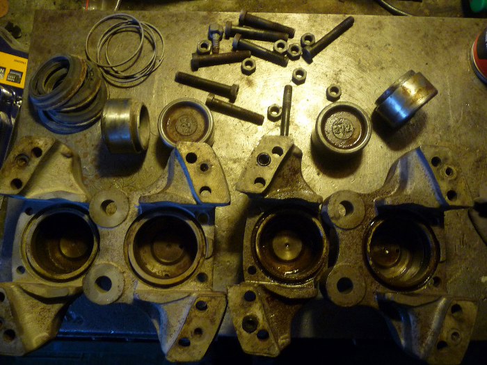 Wyjęcie tłoczków było bardzo trudne - wszystko było zapieczone i sporo tam było korozji. O dziwo same tłoczki po wyczyszczeniu są w bardzo dobrym stanie.