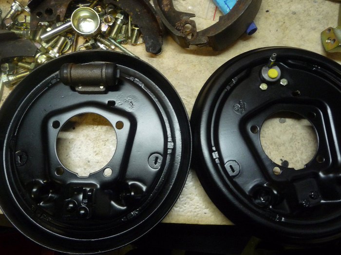 Pora na tylne hamulce. Do tarcz kotwicznych przykręciłem cylinderki hamulcowe. Śrubek brakowało, więc dobrałem pasujące, o właściwej twardości.