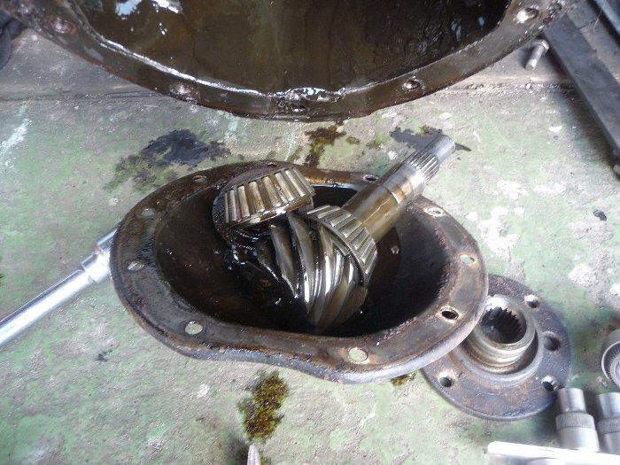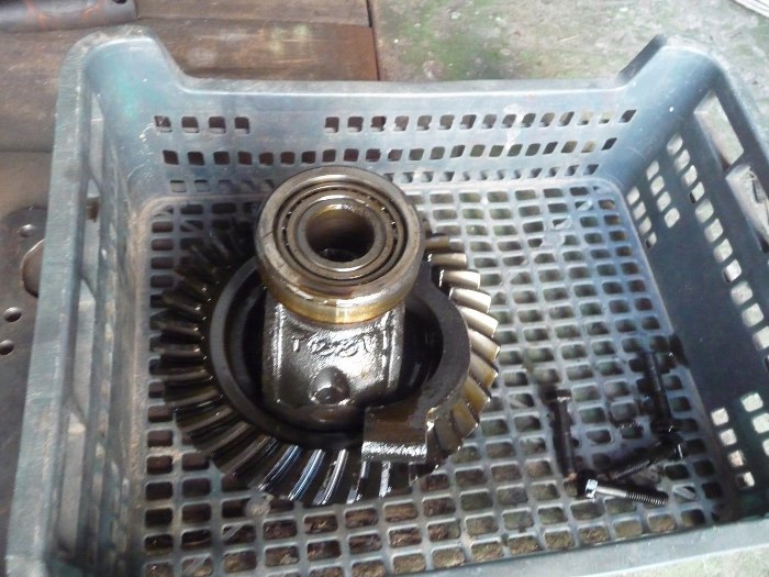 Wyjąłem też wałek atakujący z obudowy mostu. Dziwi mnie w tych fordowych mostach, że nie ma w nich praktycznie żadnej regulacji podkładkami.
