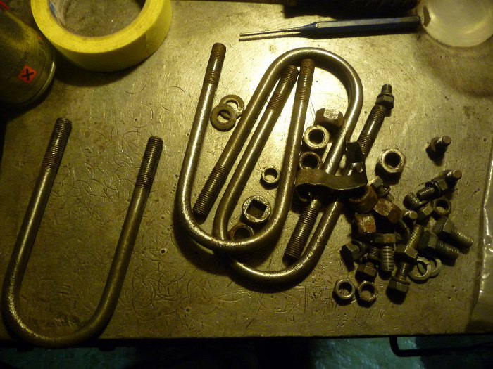 Następnie trzeba to wszystko złożyć razem, co nie jest proste, bo sprężyny ciągną szczęki w jedną stronę, a spinki mocujące w drugą. W końcu jednak udało się to opanować. Tak przygotowane zestawy hamulcowe poczekają aż most będzie gotowy.