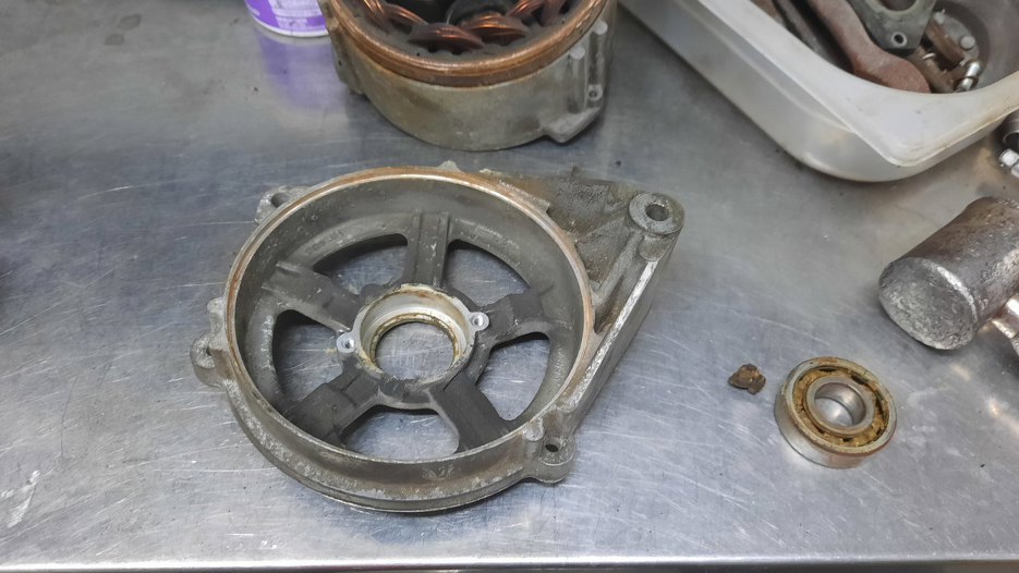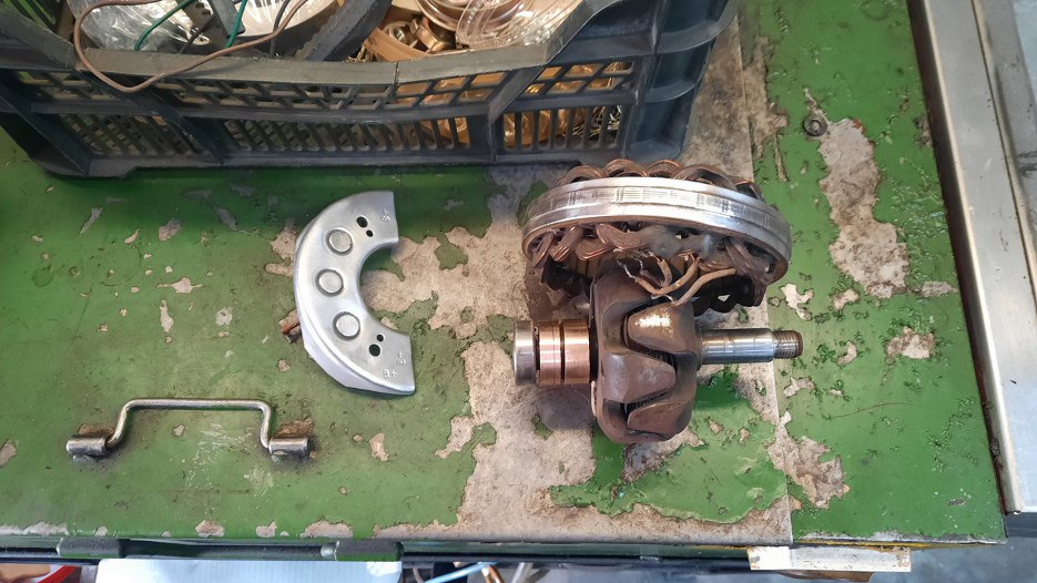 Część stałą uzwojenia i blachę osłaniającą tylną oczyściłem do gołego metalu, ślizgi szczotek na wirniku wyrównałem na tokarce.