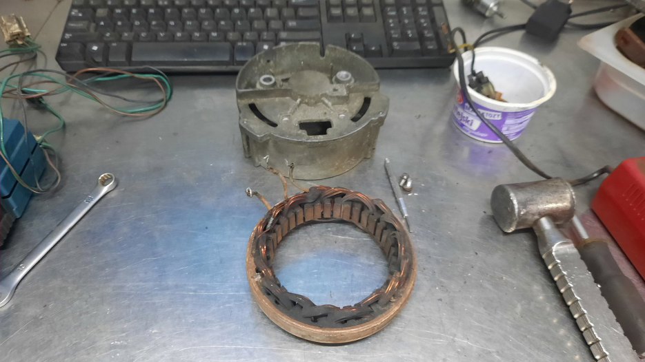 Potem wylutowałem z tej płytki diody (zostają w obudowie alternatora) i uzwojenie stojana.