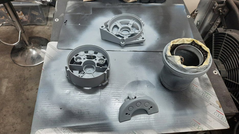 Po dokładnym doczyszczeniu obudowy pomalowałem wszystko podkładem.