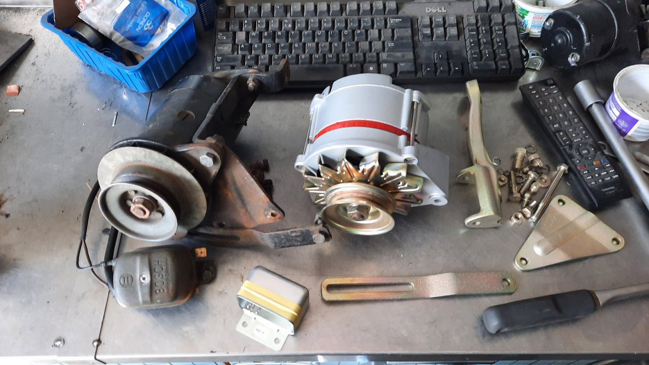 W końcu jednak wpadł mi w ręce taki alternator razem z kompletem mocowań.