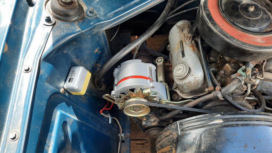 Zamontowałem alternator i nowy regulator napięcia. Najlepsze jest to, że pasek klinowy został ten sam :).