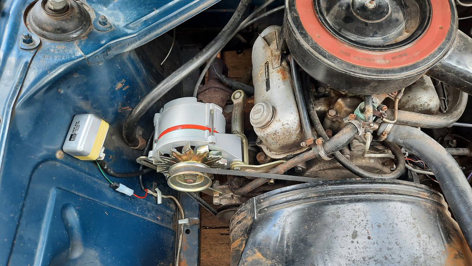 W każdym razie głównym problemem okazło się zdobycie alternatora do V4. Oczywiście najłatwiej jest założyć oryginalny od V4, razem z mocowaniami, ale nie ma na rynku jakiejkolwiek podaży części tego typu. Można oczywiście wżenić inny, ale raz, że to auto zasługuje na oryginał, dwa - drobna rzecz - łopatki wentylatora w alternatorze od V4 są zwrócone w drugą stronę niż w każdym innym - napęd osprzętu silnika w V4 jest z wałka wyrównoważającego, czyli przeciwnie niż w prawie wszystkich współczesnych silnikach.