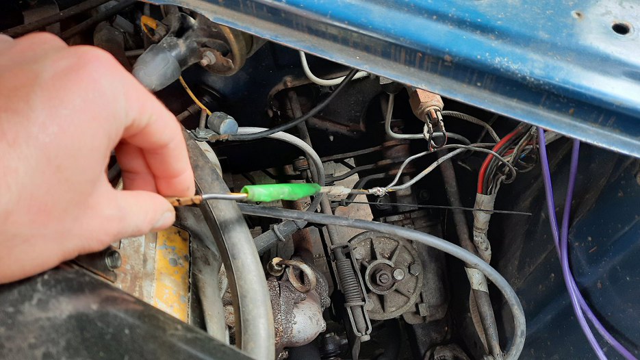 Potem umówiłem się z zaprzyjaźnionym elektrykiem, który ogarnął większą część dalszych prac. Tu widać podłączony od instalacji elektrycznej samochodu alternator.