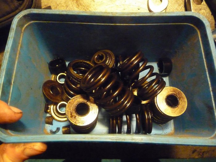 Przygotowałem głowice do szlifierni. Zapory zapiąłem, żeby nie wypadły. Dość duży jest luz na powadnicach zaworowych, prawdopodobnie będą wstawione nowe.