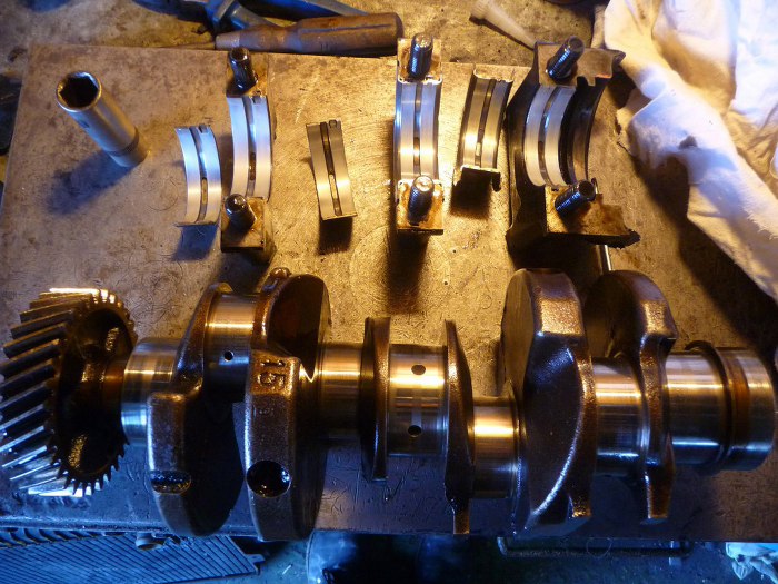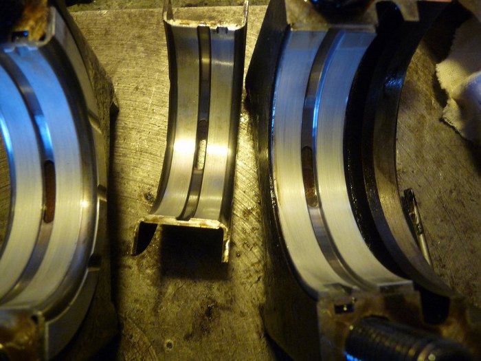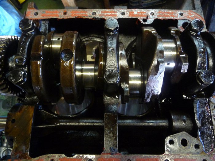 Wał w całkiem niezłym stanie, no ale w końcu po szlifie. Do tej pory byłem przekonany, że to silnik o pojemności 1.7, ale Robert się upierał, że to 1.5... na wale jest odlew 15, więc miał rację.