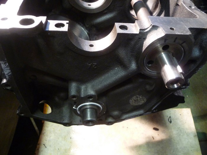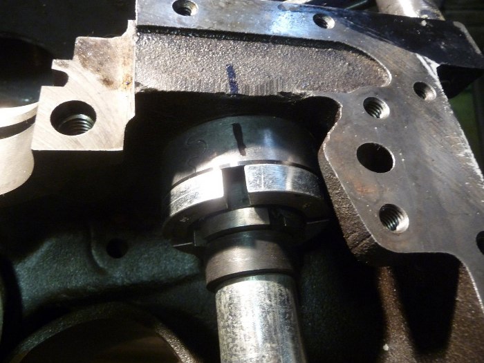 Korzystając z okazji, że panewki wbijałem mając silnik położony obok stojaka (przyrząd do panewek nie mieści się w niektóych miejscach między blokiem a stojakiem), włożyłem również od razu wałek wyrównoważający, który instaluje się od strony koła zamachowego.