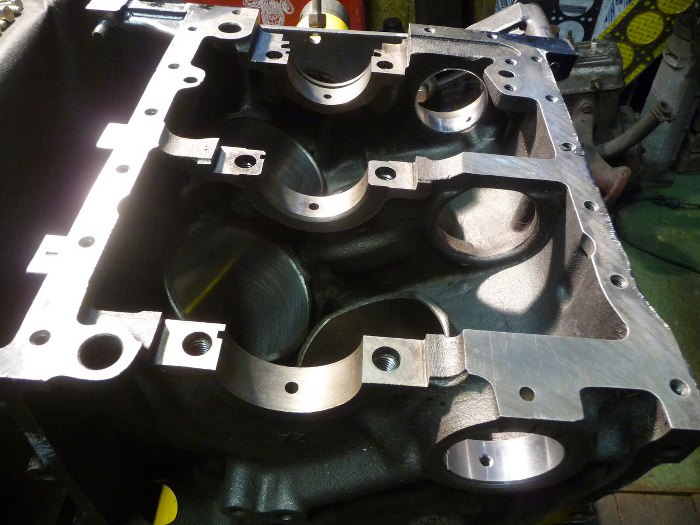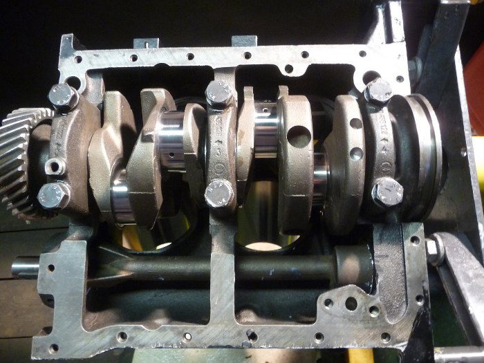 Wał włożony na miejsce, na posmarowane panewki, i dokręcony z właściwym momentem.