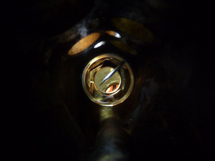 Najtrudniej jest ze środkową panewką wałka rozrządu. W tych silnikach wałek jest dość mocno zabudowany blokiem i niewiele widać w środku, a trzeba trafić aż w dwa kanały olejowe. Próba z wkładaniem śrubokręta w kanał olejowy prowadzący do głowicy pokazuje, że panewka włożona jest poprawnie.
