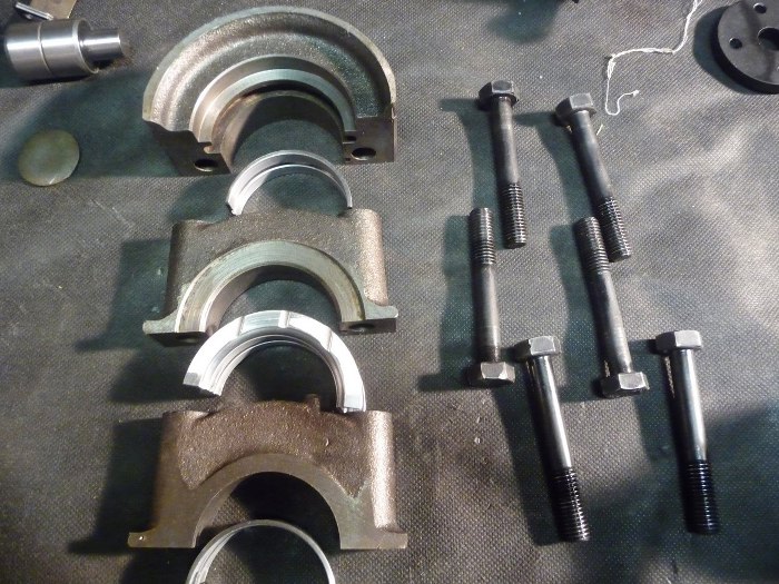 Przygotowałem podpory wału z panewkami i śrubami.
