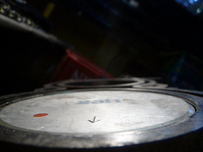 Tu mniej więcej widać, że między denkiem tłoka a płaszczyzną bloku jest różnica. Jest to jakieś 0.3mm.