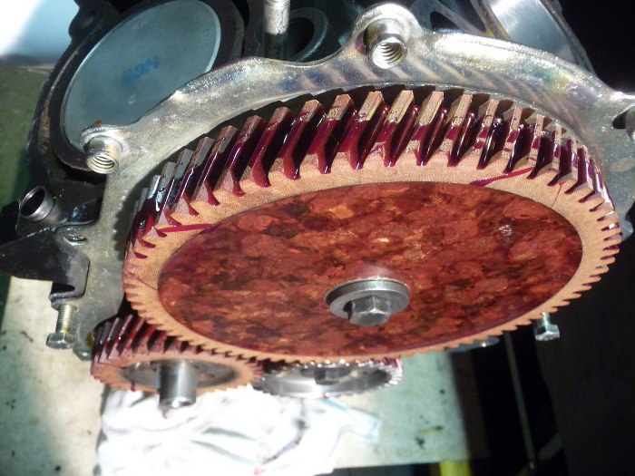 Następnie użyłem smaru montażowego (właściwie bardziej przypomina to kisiel), żeby koła miały smarowanie podczas pierwszego uruchomienia silnika.