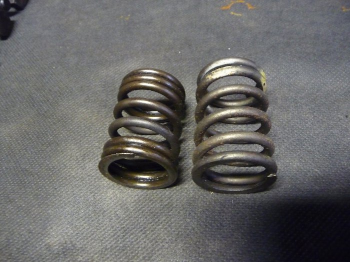 Wcześniej też zwróciłem uwagę na to, że sprężyny zaworowe są jakieś dziwne - nie myliłem się. To V4 ma krótsze sprężyny (po lewej) niż późniejsze V6 (po prawej).