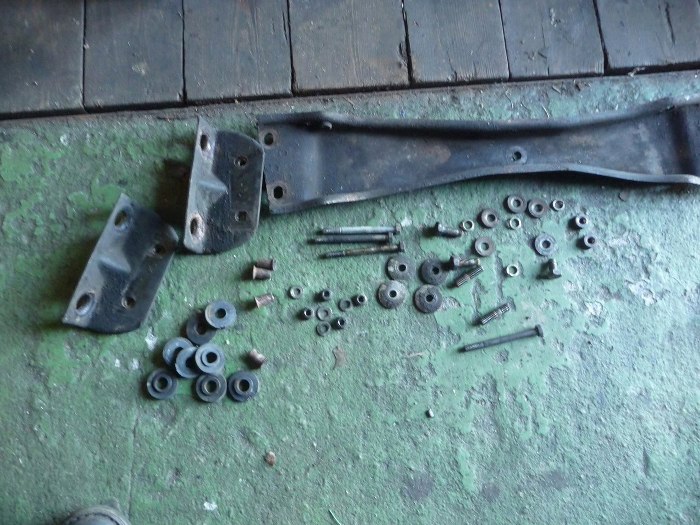 Łapa skrzyni i wszystkie elementy składowe jej mocowania. Jest tego trochę.