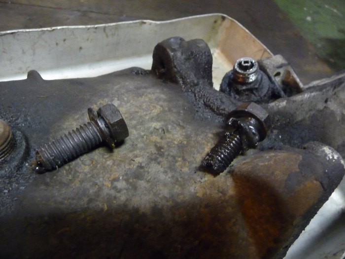 Jednak nasi tu wcześniej byli. Śruby łączące dwie części obudowy skrzyni muszą być uszczelnione na gwincie. Te były wkręcone po zawinięciu ich taśmą elektroizolacyjną...