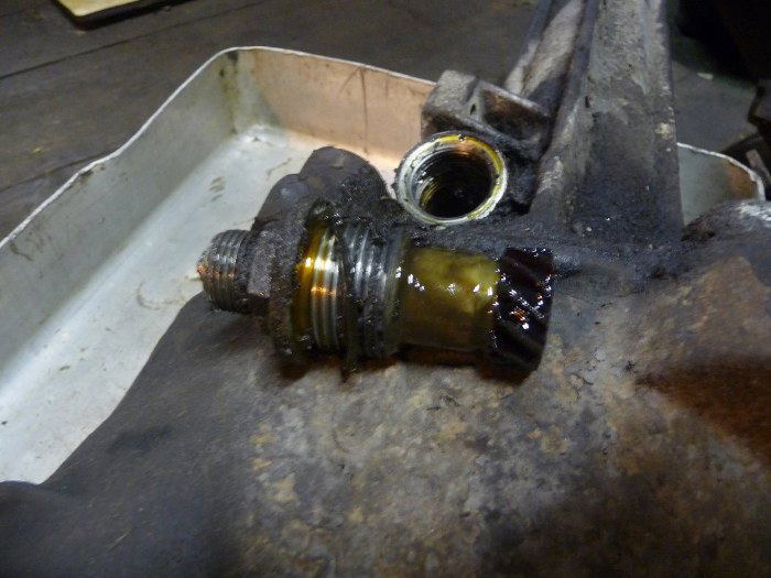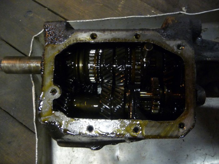 W środku skrzyni dość mętny olej, ale chociaż tam był.