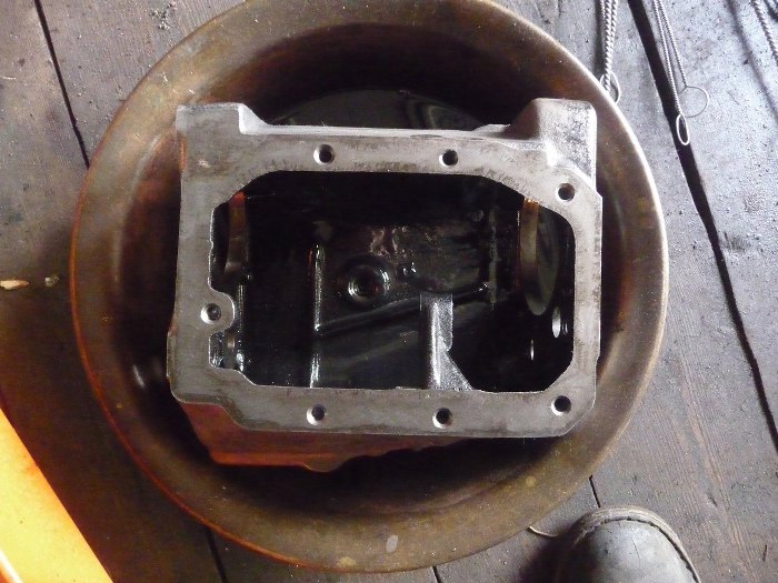 Skrzynia już po zlaniu starego oleju i dokładnym wstępnym myciu. Teraz trzeba niestety rozłożyć to w drobny mak, żeby wymienić uszczelki, ale przy okazji sprawdzę stan trybów.