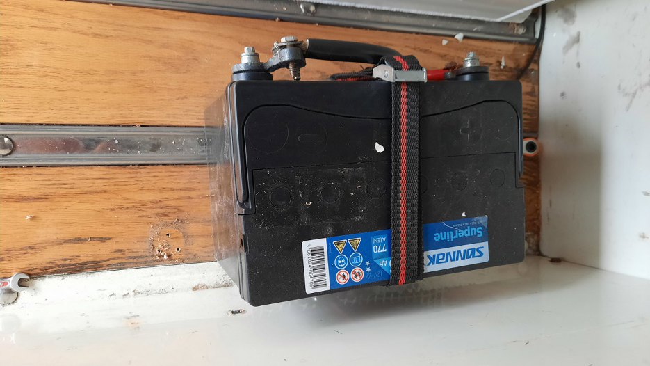 Po odkręceniu tamtych rzeczy demontuję resztę ze skrzyni. Akumulator z "mocowaniem"...
