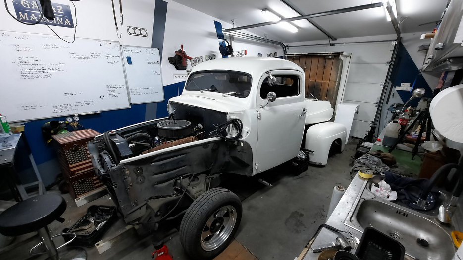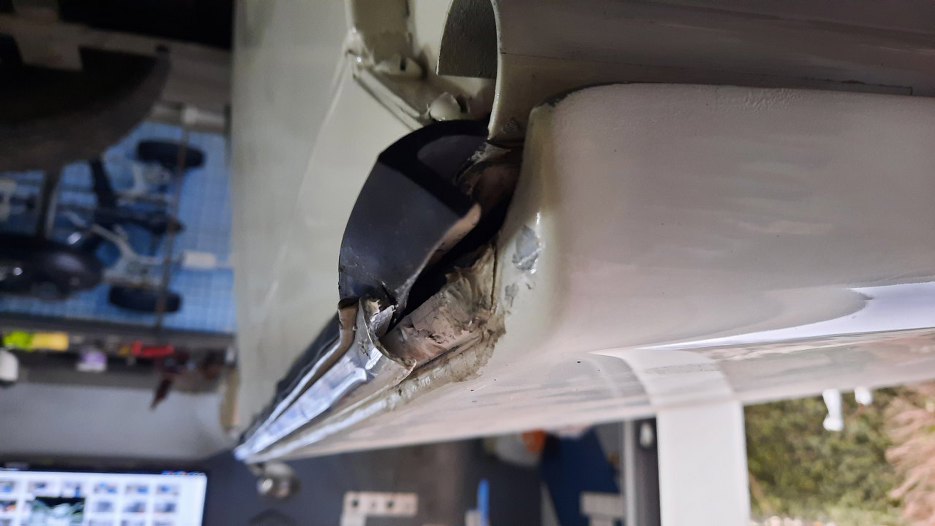 Dzień drugi rozkładania Forda. Odkręciłem śruby mocujące progi. Teraz właśnie się okazało, że progi też są z laminatu. Aluminiowe detale są wkręcone na wkręty na wylot. Wkręty mają jakieś 8 cm długości, bo tak :).