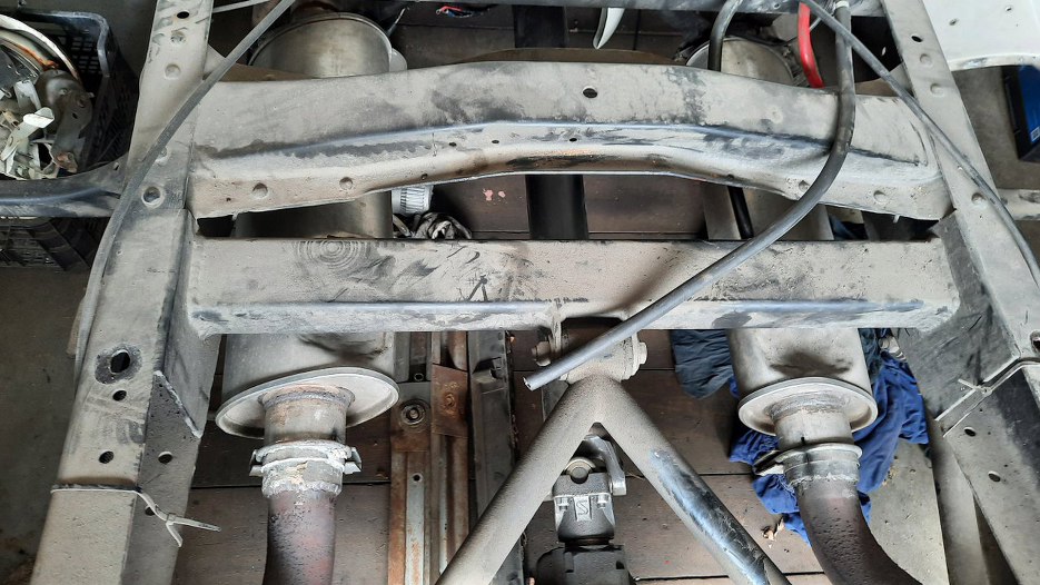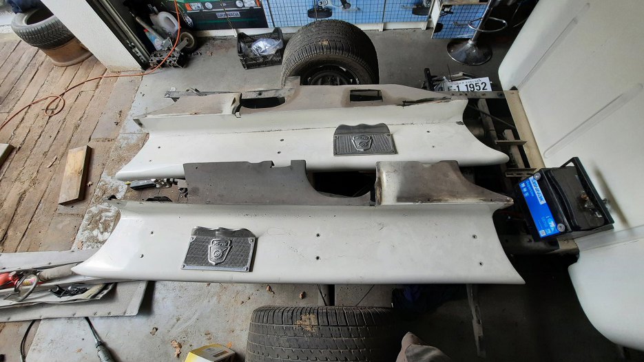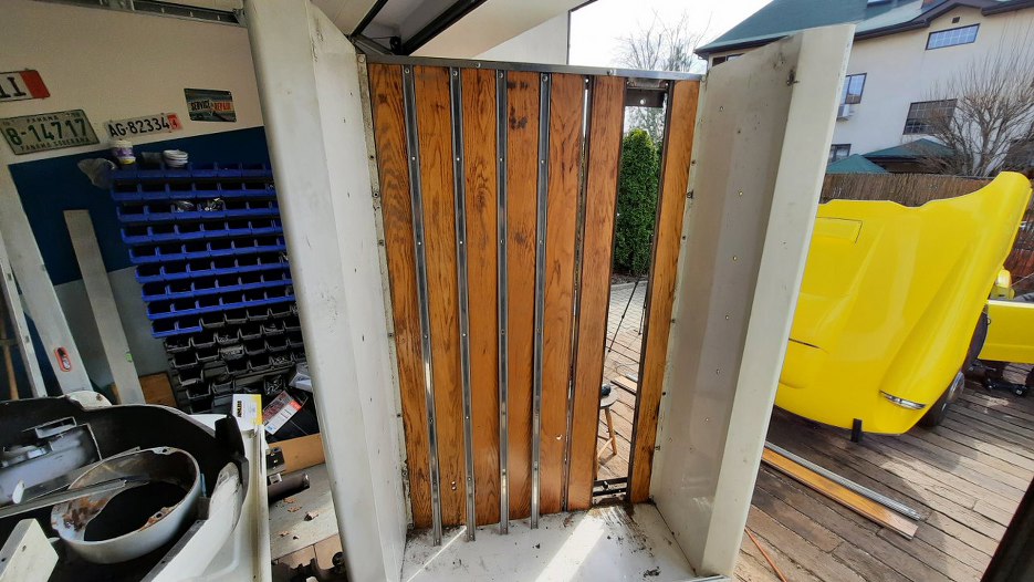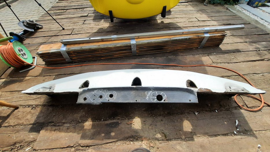 Panel spod tylnej burty nie będzie sodowany, bo jest z laminatu, ale też trzeba z niego wszystko zdjąć do dalszych prac lakierniczych.