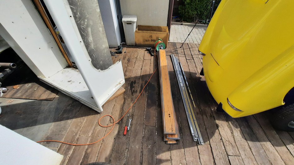 Wykręciłem i wyjąłem większą część desek. Nie wiem, czy będzie sens je odnawiać, bo są trochę spróchniałe. Mam teścia stolarza, być może jest to okazja, żeby to wykorzystać :).