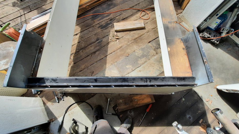 U góry mam tył skrzyni. Ostatnia śruba trzyma deskę do profilu poprzecznego.
