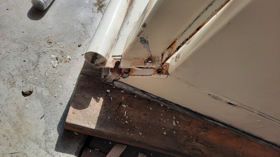 Odkręcone mechanizmy zamykania.