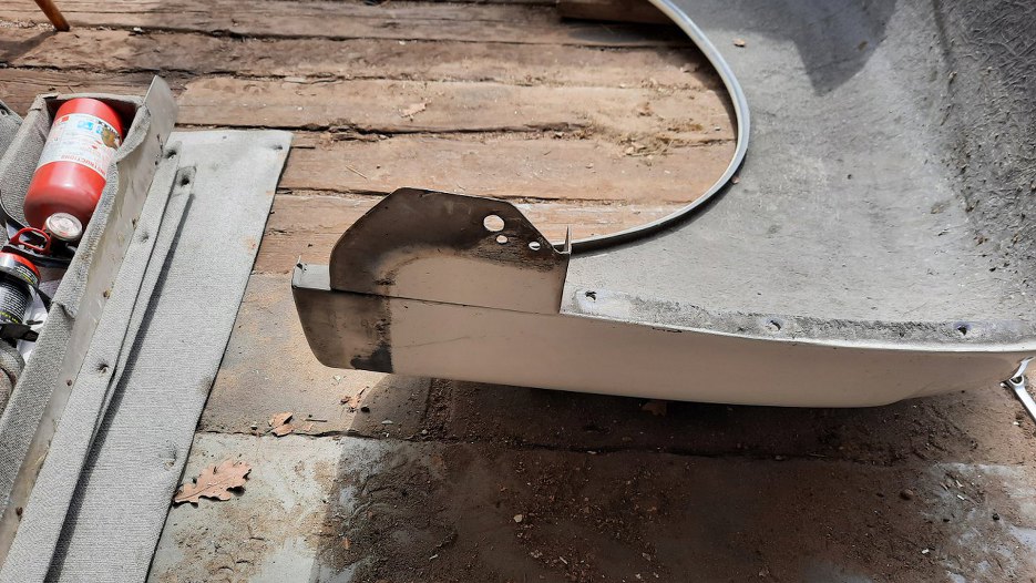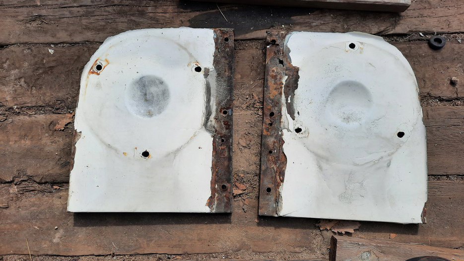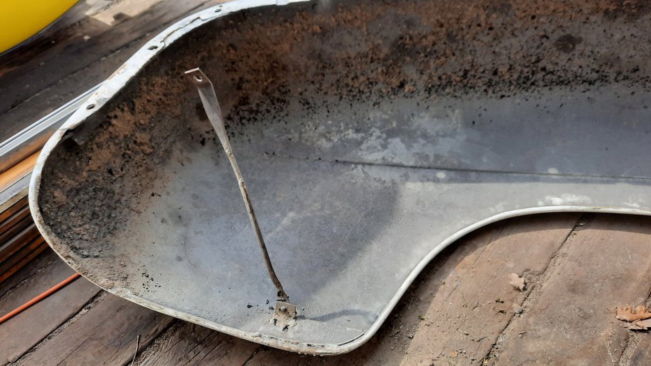 Następne są błotniki przednie. One też są z laminatu, więc nie pojadą do sodowania, ale są na ich końcach kawałki blachy
