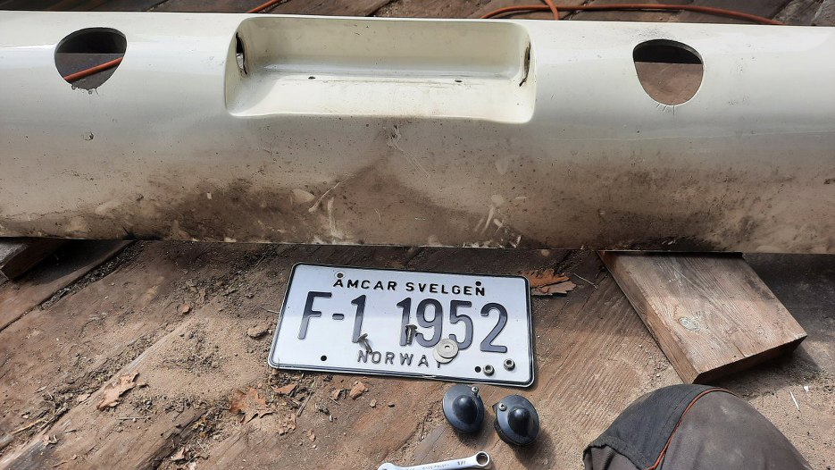 Wyjąłem lampki podświetlenia tablicy (miernej jakości, prawdopodobnie poszukam czegoś solidniejszego) i tablicę rejestracyjną. Nie wiem, czy nie będziemy poszerzać wnęki na tablicę na nasz wymiar. Bo te nasze małe tablice wyglądają koszmarnie.