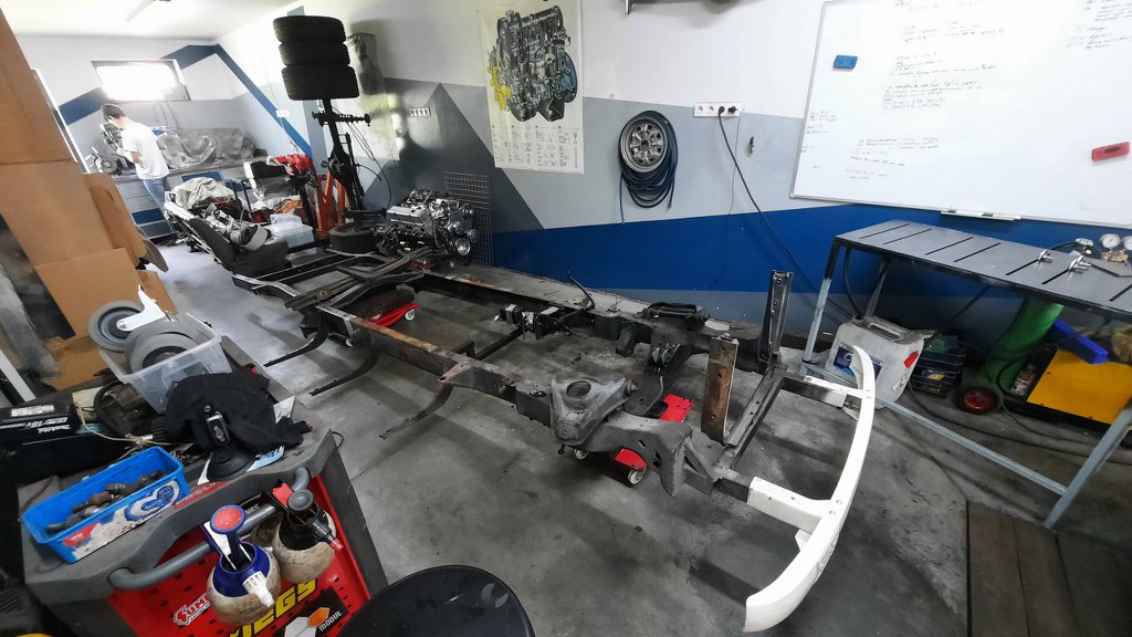 Silnik i skrzynia skitrane w kącie, rama pusta. Potem ją wyrzucę na dwór.