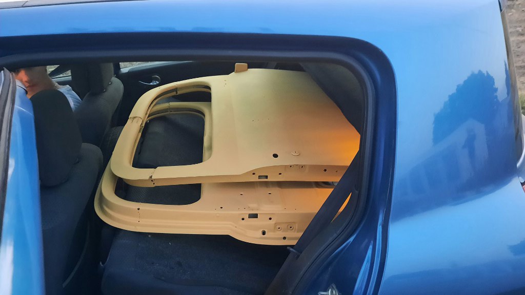 Tył dachu - to samo. Ledwo załapana blacha, żeby się to trzymało na słowo honoru. Przy czym honor na tyle kiepski, że przy byle stłuczce to wszystko by się porwało i ucięło kierowcy głowę. Ale to dla autora tej rzeźby najwidoczniej nie miało znaczenia. Może ma dobrych prawników?