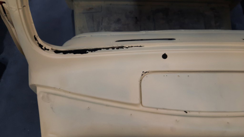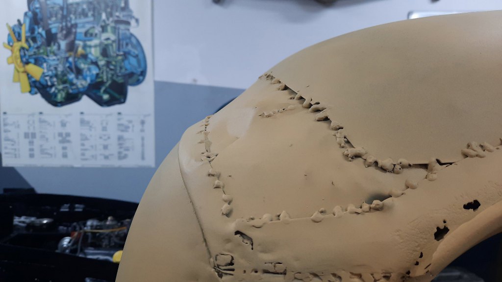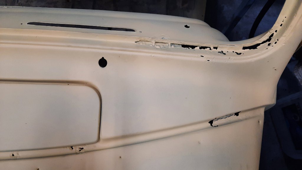 Podszybie przednie wygnite dość mocno. To wszystko uzupełnione było szpachlą, więc nie zgniło od remontu. To było tak zostawione podczas tego "remontu".