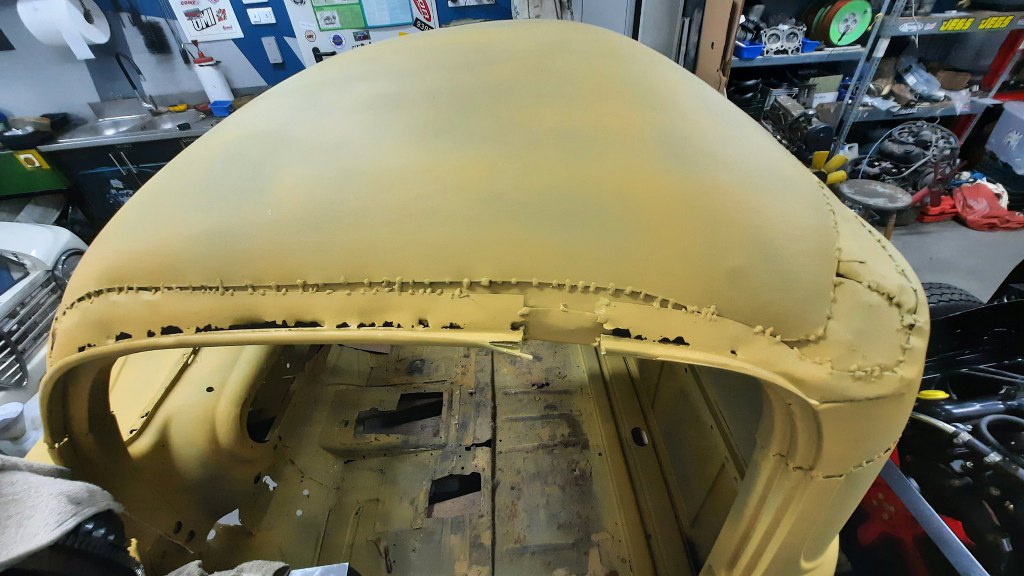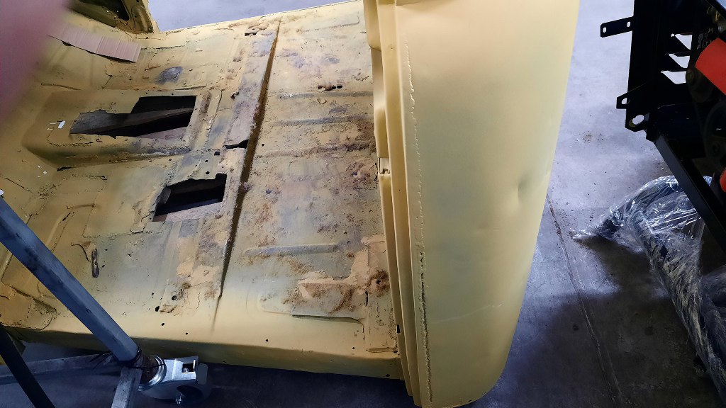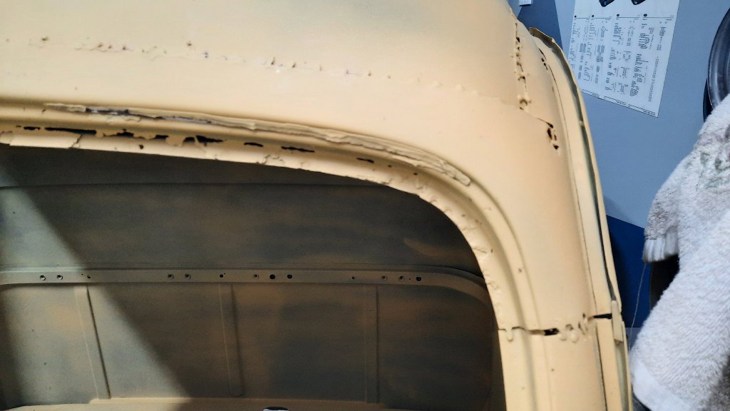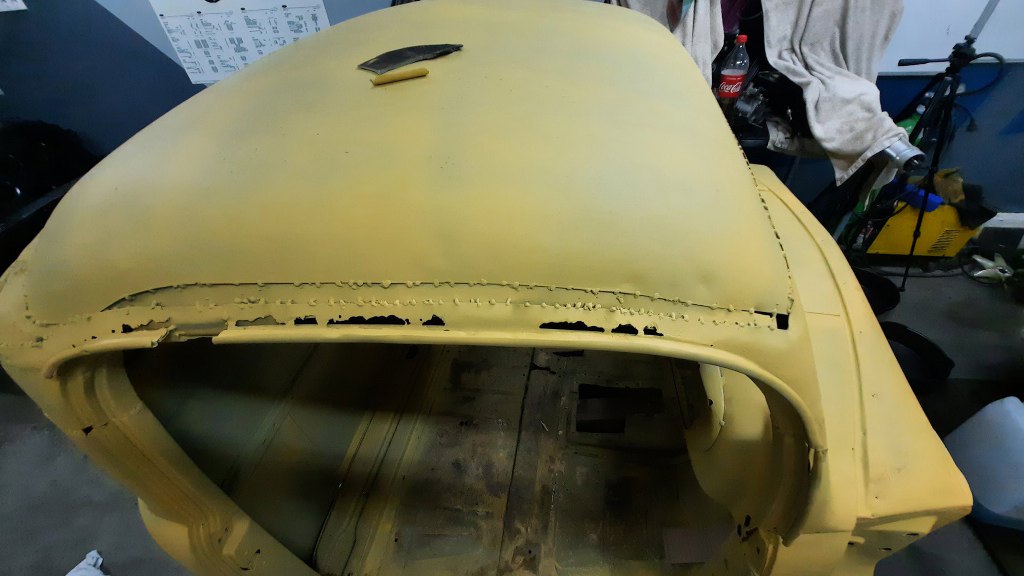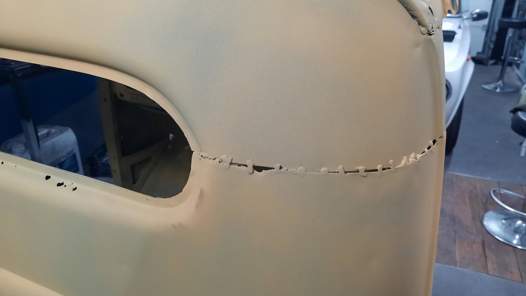 I niestety po oczyszczeniu karoserii mamy po prostu dramat. Takie coś powinno być karalne. Taka karoseria jest po prostu niebezpieczna. Wiedziałem, że amerykanie potrafią paprać, ale nie wiedziałem, że aż tak... Tu widzimy drzwi. Po obniżeniu dachu trzeba było też obniżyć ramki.