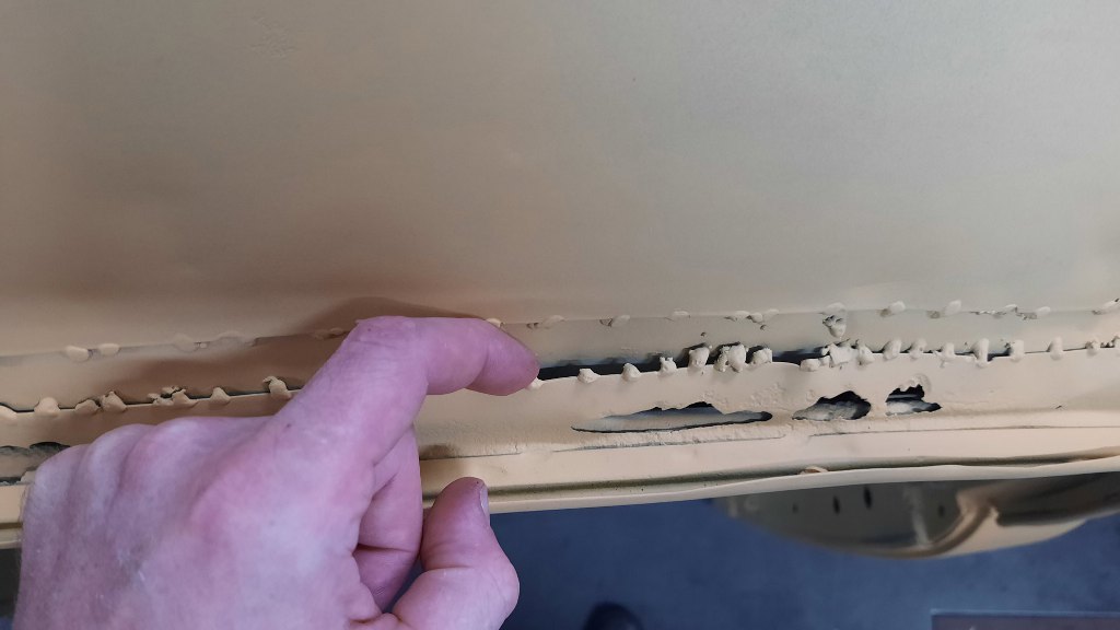 Po stronie kierowcy dziura była na tyle duża, że dla podtrzymania szpachli podłożona została tam blaszka.