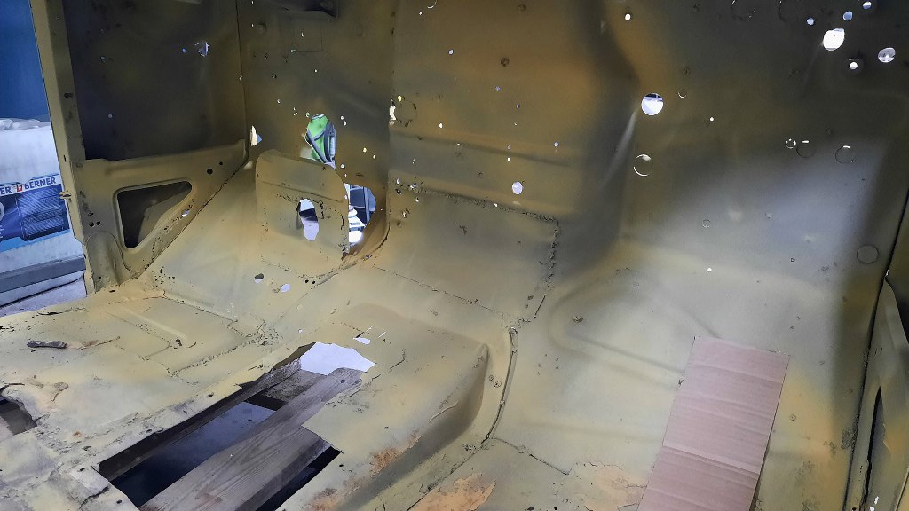 Tylna krawędź za drzwiami kierowcy nie wiem czemu rozcięta w pionie i zespawana. Możliwe, że buda się rozeszła i ktoś próbował to zniwelować, żeby nie było za dużej szpary między rzwiami a kabiną.