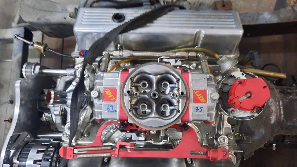 Widać na grodzi przetłoczenia pod oryginalny silnik - teraz silnik potrzeby jest, żeby nowe przetłoczenia, w nowej grodzi, pasowały - czyli żeby umożliwiły dostęp do pokryw zaworów i aparatu zapłonowego, ale żeby nie były za duże.