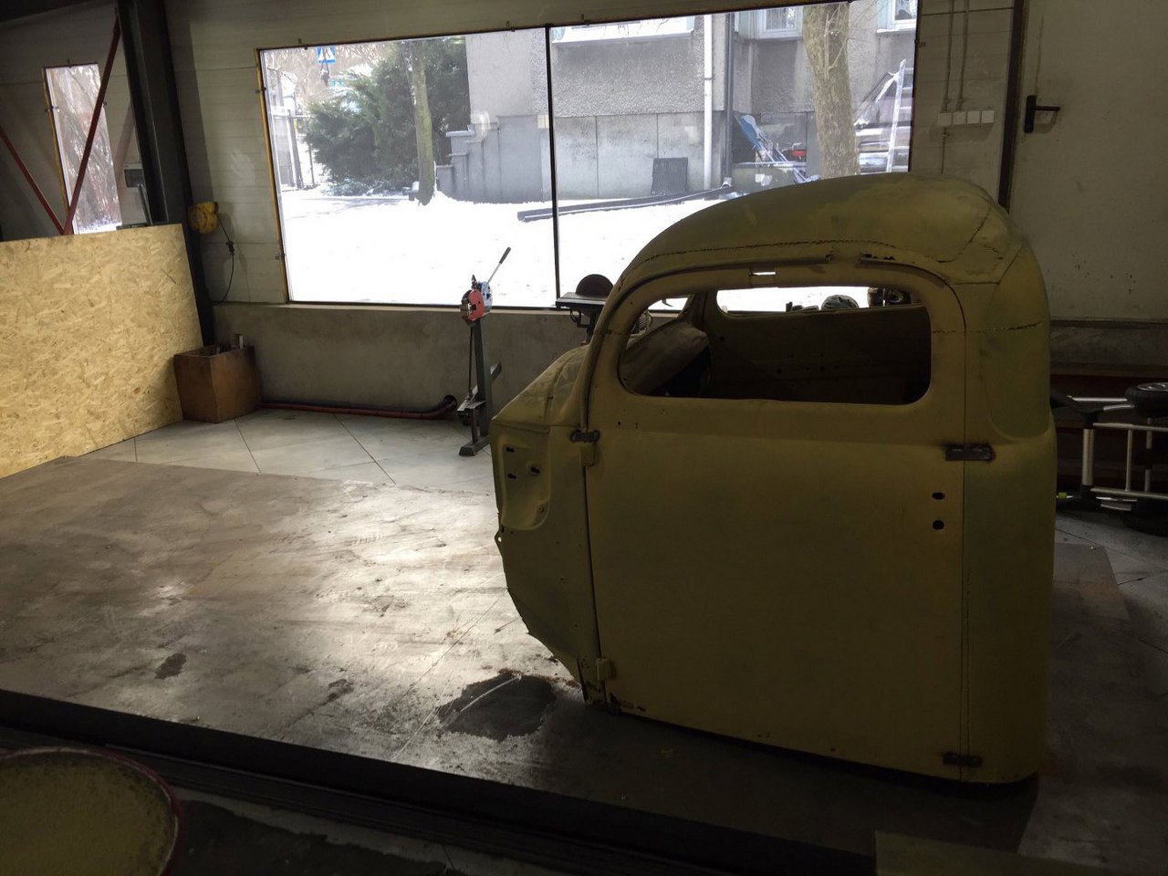 Od dłuższego czasu tu już nic nie wstawiałem o Fordzie F1, ale to nie znaczy, że projekt umarł. Cały czas się coś działo, może nie szybko, ale skutecznie. Skończyliśmy ostatni wpis na tym, że rama z budą pojechała do blacharki. No i o tym teraz trochę napiszę. Cał blacharka została zrobiona przez mojego kolegę, a wszystkie zdjęcia z tego etapu są jego autorstwa. No to popatrzmy, co się działo. Najpierw buda trafiła do warsztatu.