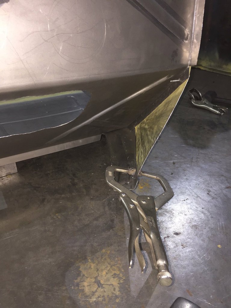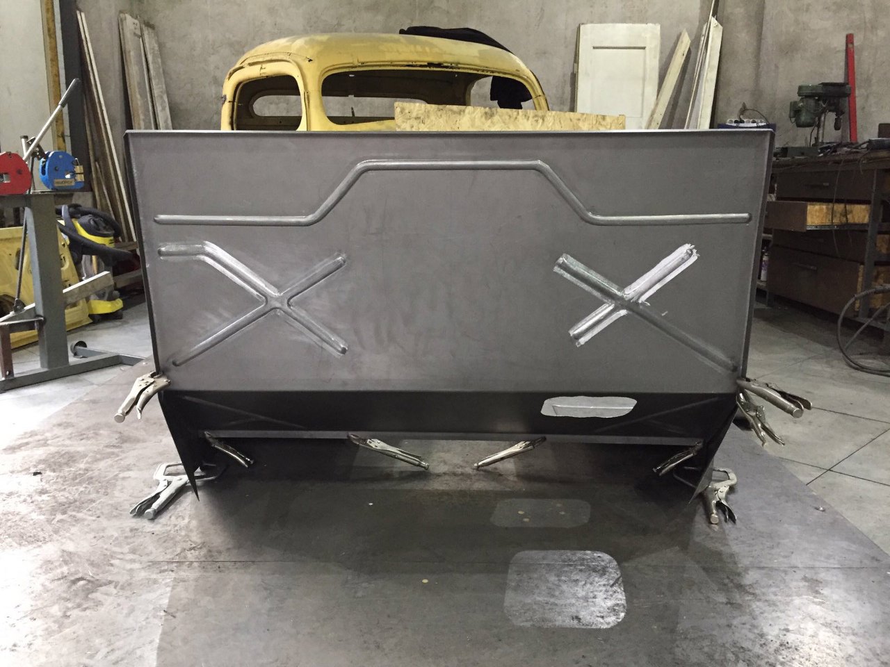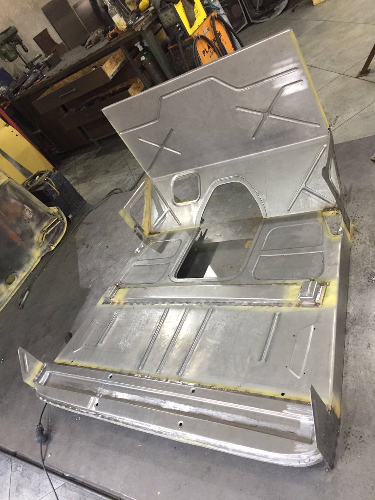 Ponieważ nie bardzo było co zbierać z tej karoserii, trzeba było sporo zbudować od zera. A że samochód jest mocno przerobiony, to i niewiele elementów dostępnych jako reprodukcje tu się przyda. Większość rzeczy zostanie dorobiona z arkusza blachy. Zaczynając od płyty podłogowej.