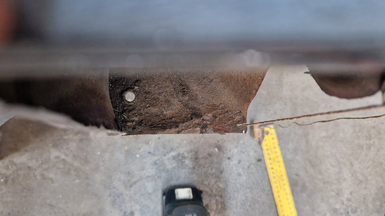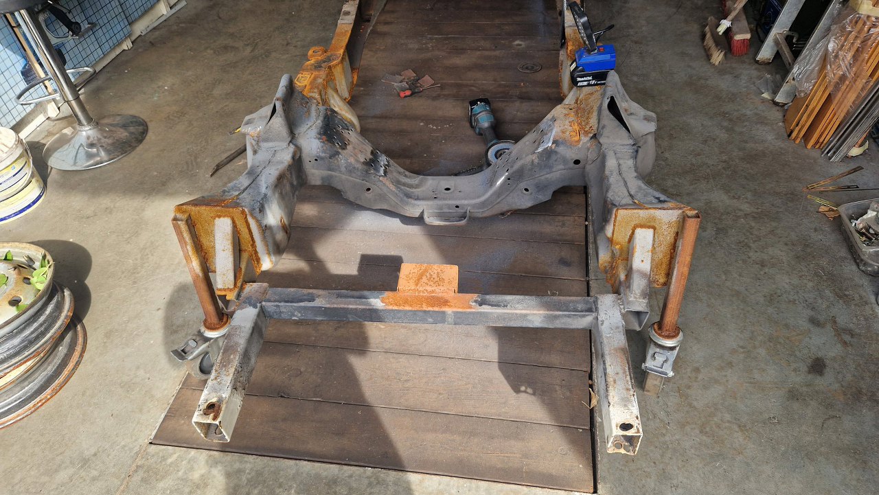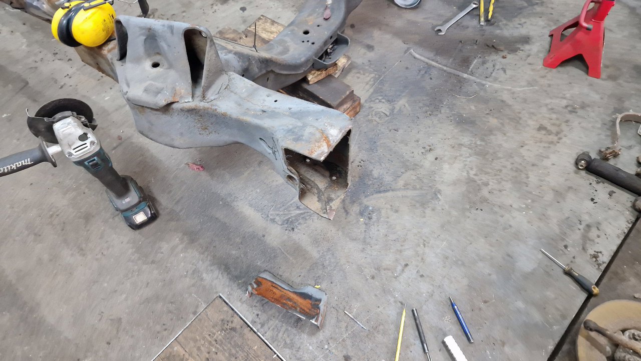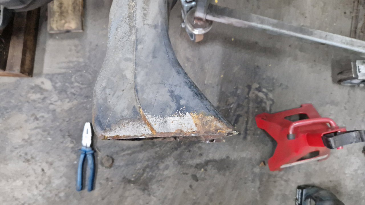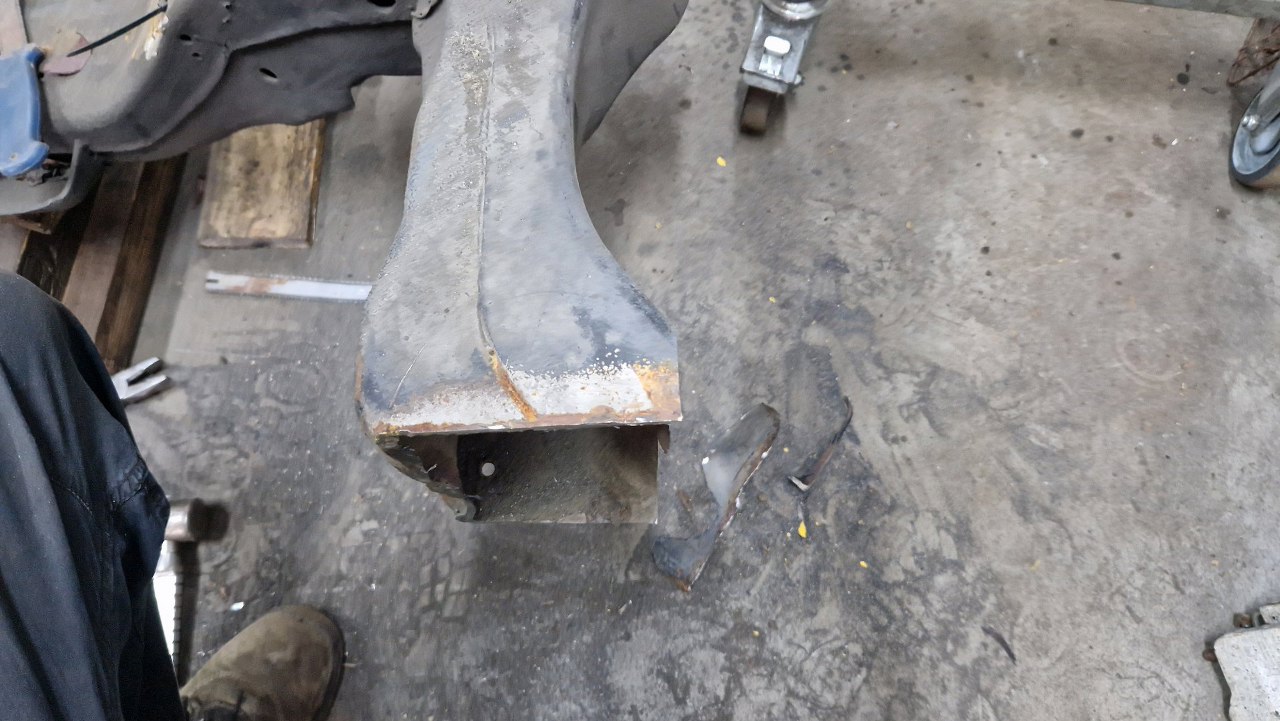Odciąłem cały przód ramy. Co ciekawe, odciąłem go na spawach, żeby jak najmniej tracić z materiału ramy. Zobaczysz, czemu to podkreślam później. Przy okazji zniknęły kółka założone do ramy na czas blacharki.