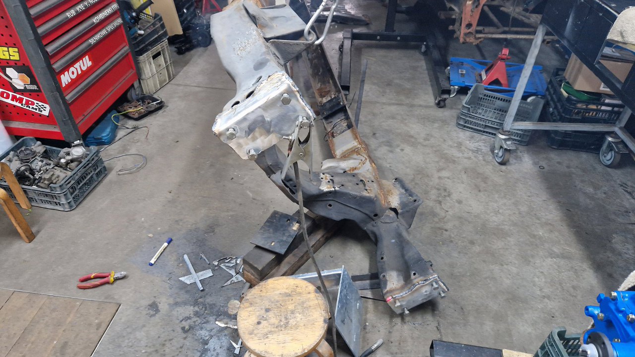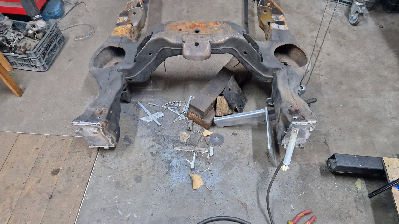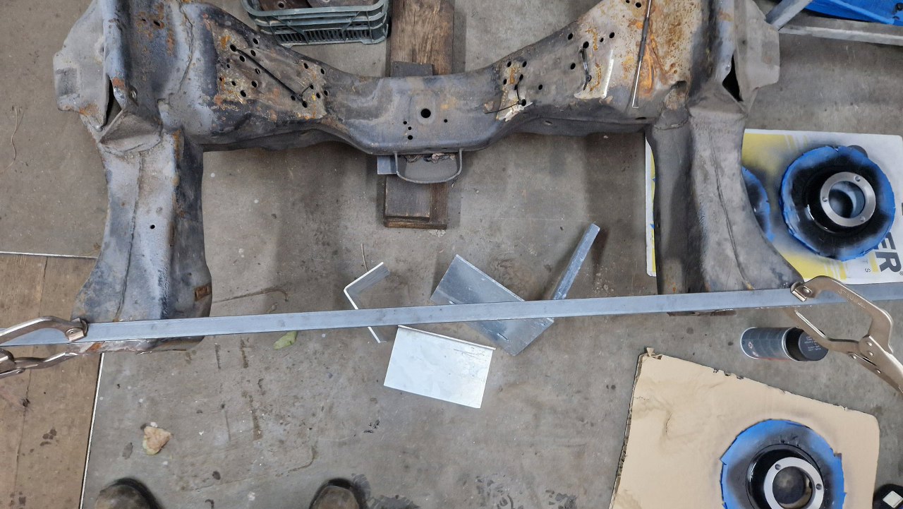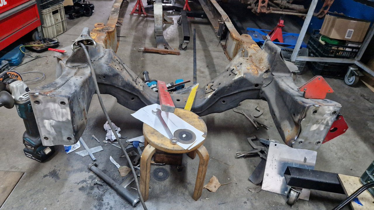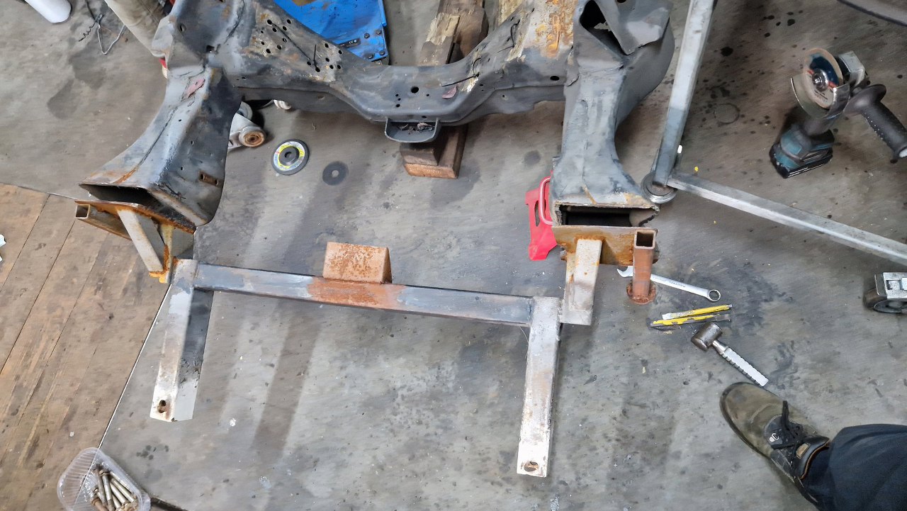 Oryginalna rama Chevroleta rozszerza się z przodu pod mocowania zderzaka. Tu nie jest to potrzebne, więc ramę ile się da zwężę.