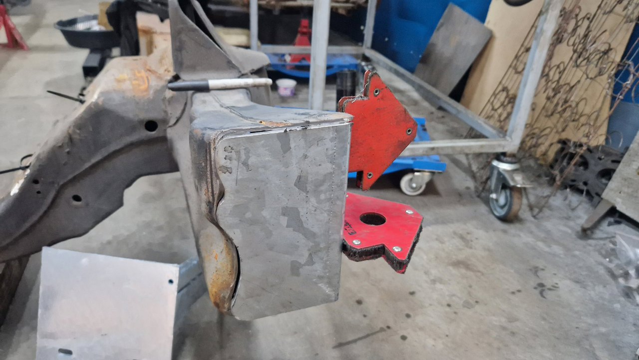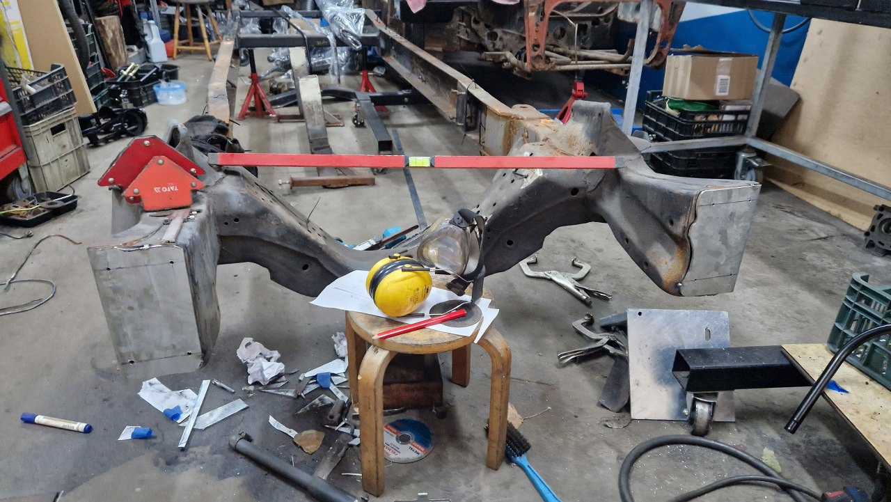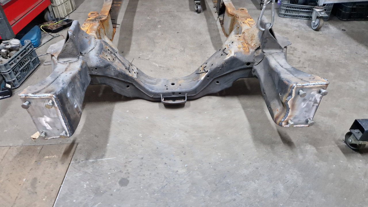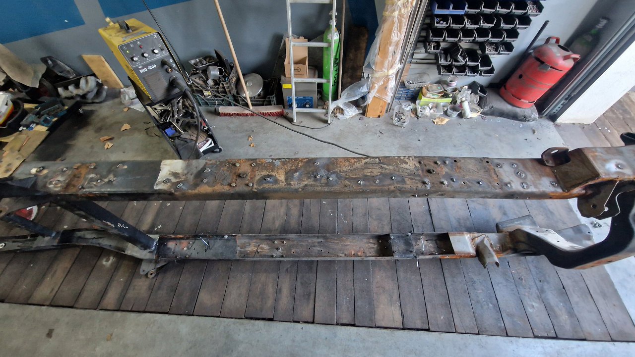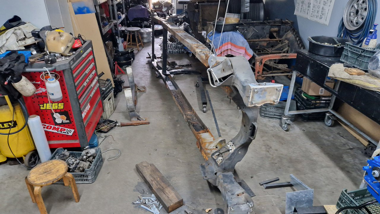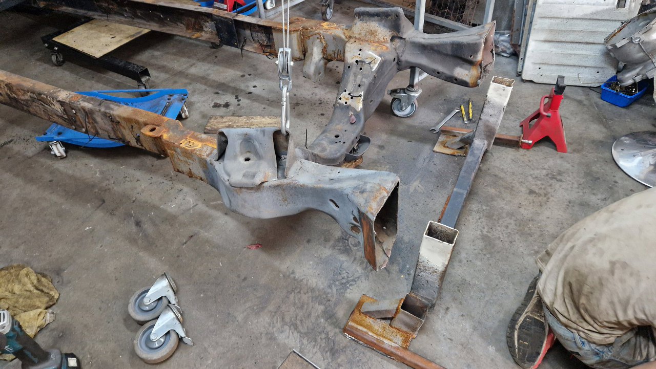 Oryginalna rama Chevroleta rozszerza się z przodu pod mocowania zderzaka. Tu nie jest to potrzebne, więc ramę ile się da zwężę.