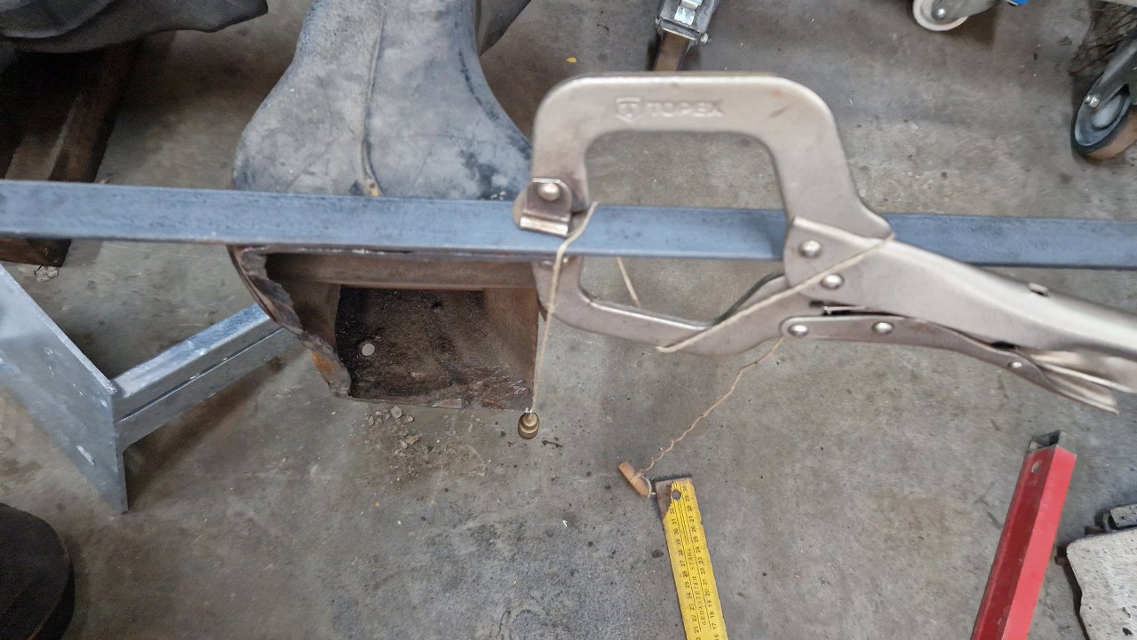 Po odcięciu spawów otwory powiększyłem, a od środka wspawałem nakrętki. Najlepiej by było teraz zrobić przód ramy, ale nie ma na to szans ze względu na logistykę operacji i ilość miejsca, którą obecnie mam. Dlatego przód ramy będzie zrobiony później, i mocowany będzie do ramy ośmioma śrubami M12. Wystarczą :).