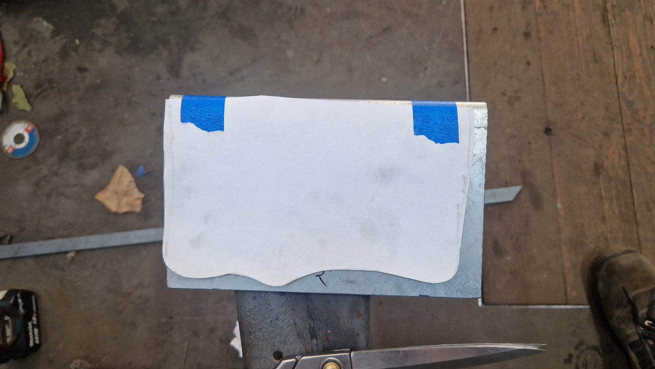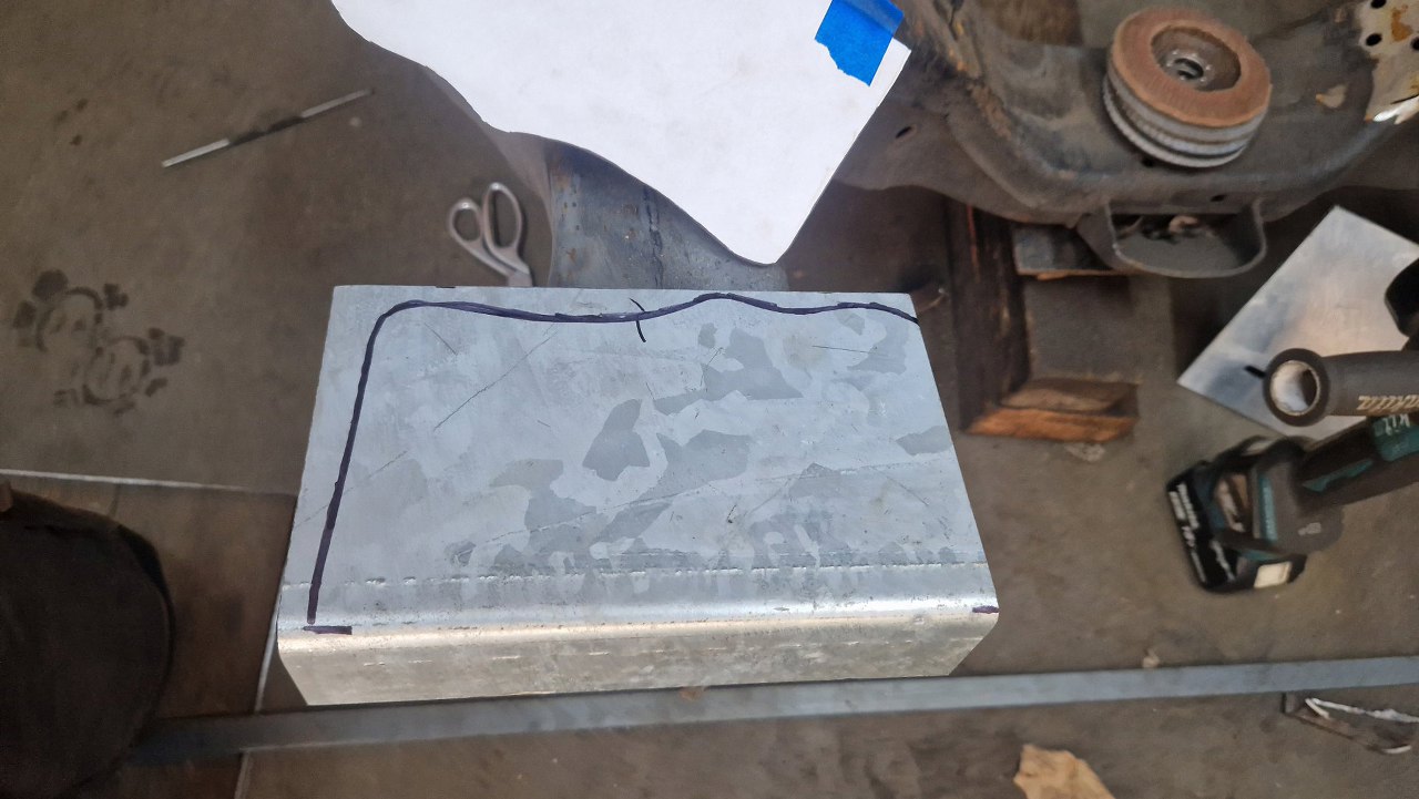 Potem dorwałem kątowniki ze stali podobnej grubości, co rama i przeniosłem na nie kształt wycięcia ramy.