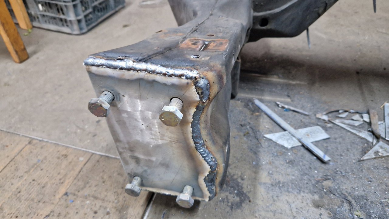 Może nie są to najpiękniejsze spawy, ale są moim zdaniem całkiem przyzwoite. No i na pewno mocniejsze od tych, które mocowały łapę skrzyni do ramy :).