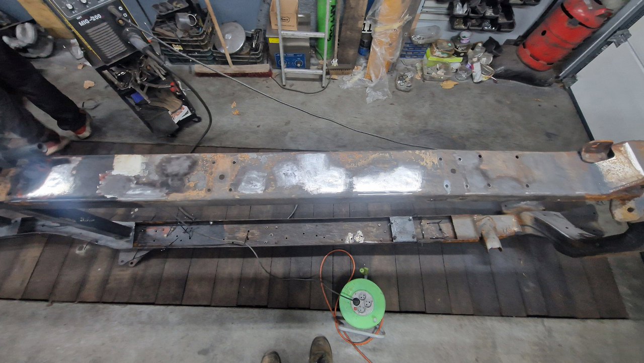 Które potem trzeba oszlifować i w miarę konieczności powtórzyć spaw. Potem z drugiej strony to samo, a potem na drugiej podłużnicy znowu.