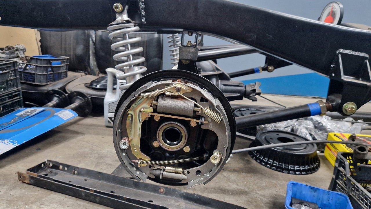 Ostatnią rzeczą z tyłu było wyregulowanie szczęk hamulcowych i założenie bębnów.